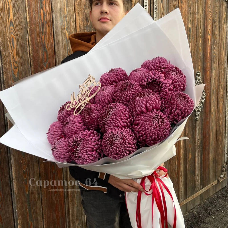 ГлавнаяКаталогБукетыБукет с хризантемами «Бигуди»