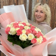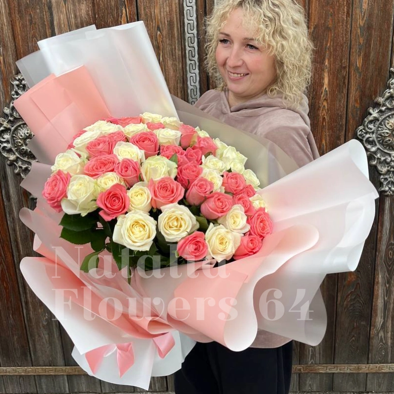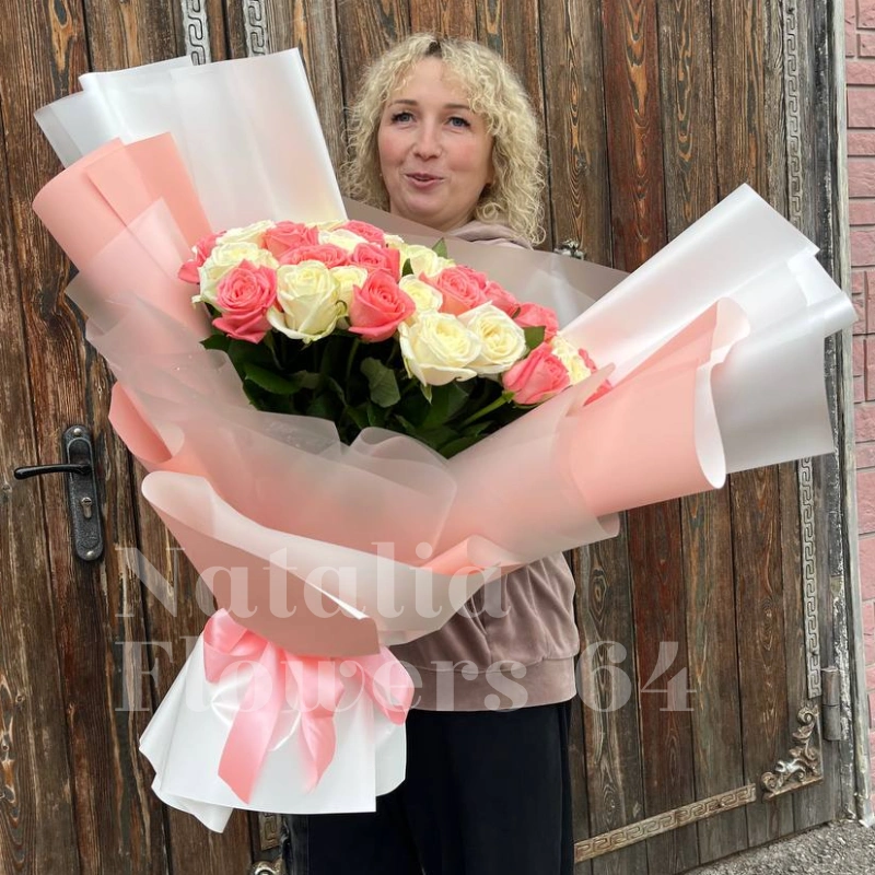 Букет «Нежное очарование» Этот букет - настоящее произведение искусства, созданное из нежных роз белого и розового оттенков. Он идеально подойдёт для выражения любви, благодарности или просто для того, чтобы сделать день особенным.