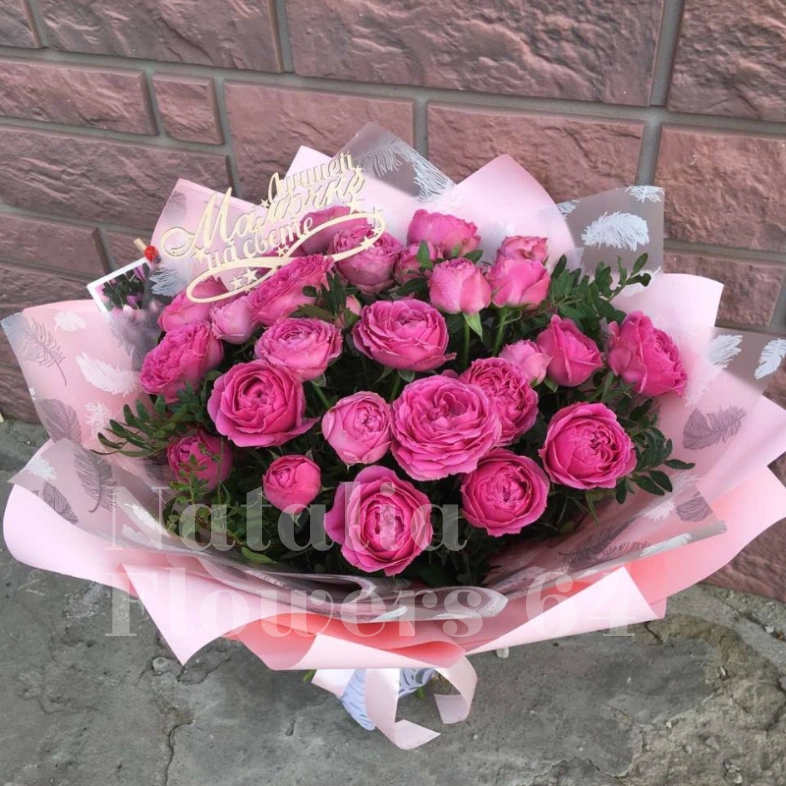 ГлавнаяКаталогРозыБукет из пионовидной кустовой розы «Мистик»