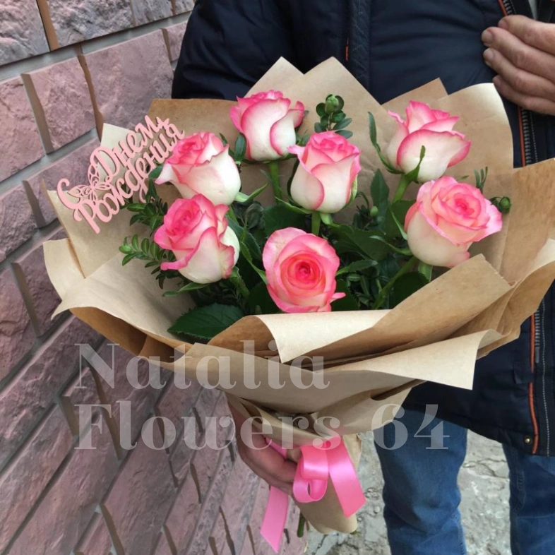 ГлавнаяКаталогРозыБукет 7 роз в крафте «привет»