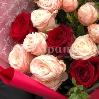 Букет из пионовидных кустовых роз «Мисти баблс»