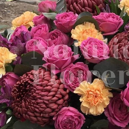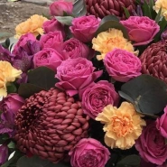 ГлавнаяКаталогКомпозицииЦветы в шляпной коробке «осенняя роскошь»