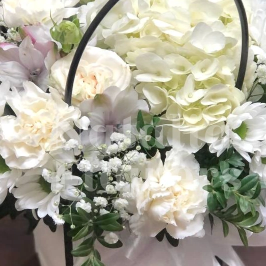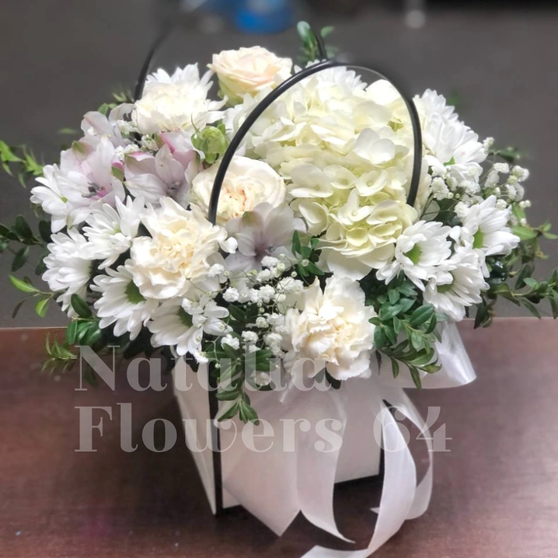 ГлавнаяКаталогКомпозицииЦветы в сумочке «снегопад»