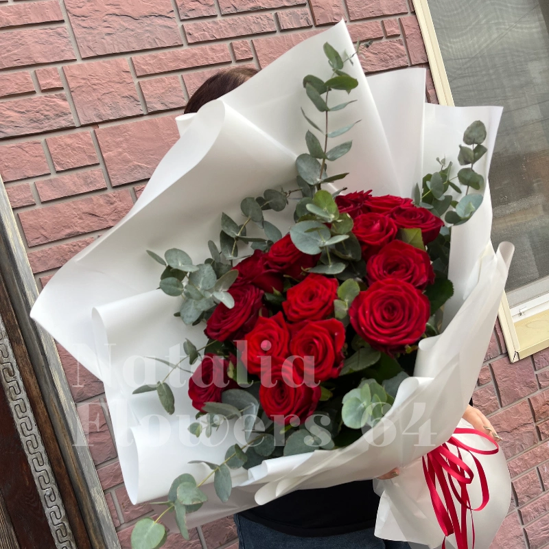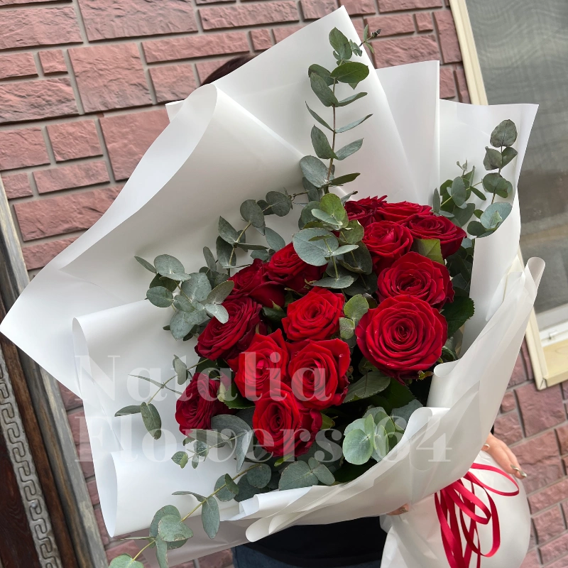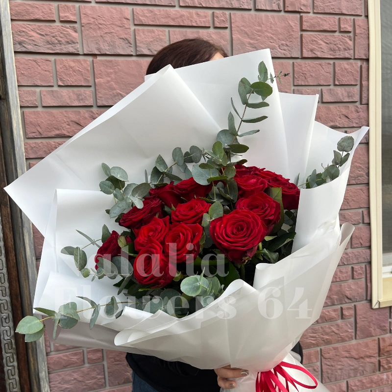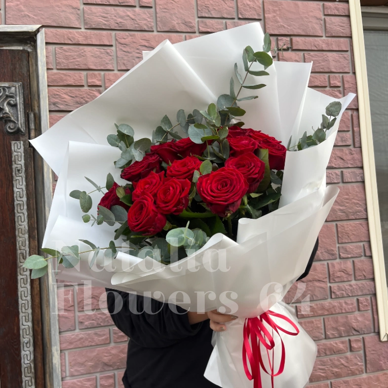 ГлавнаяКаталогРозыБукет алых роз для любимой