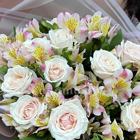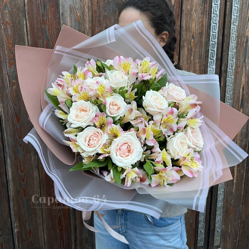 Букет с розами и альстромериями «Весенний вальс»