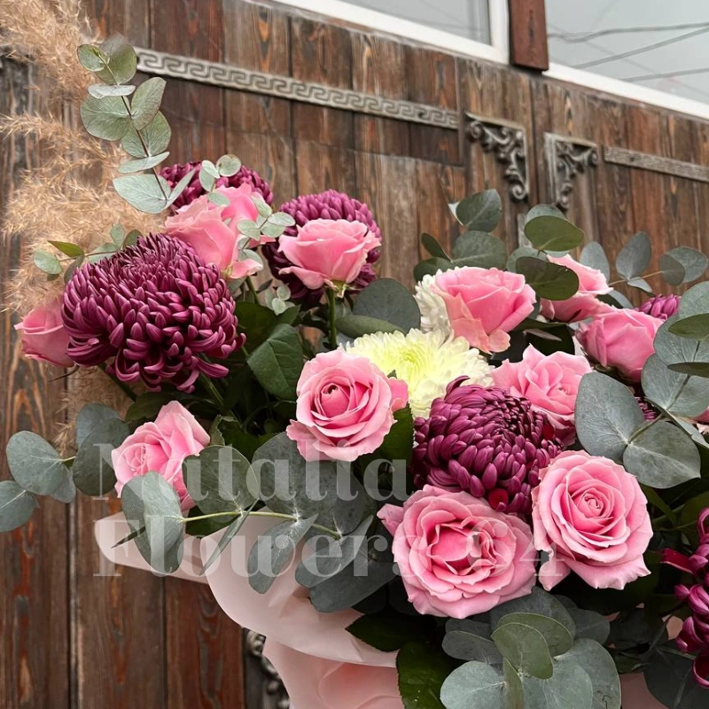Букет из пионовидной кустовой розы «Мистик»