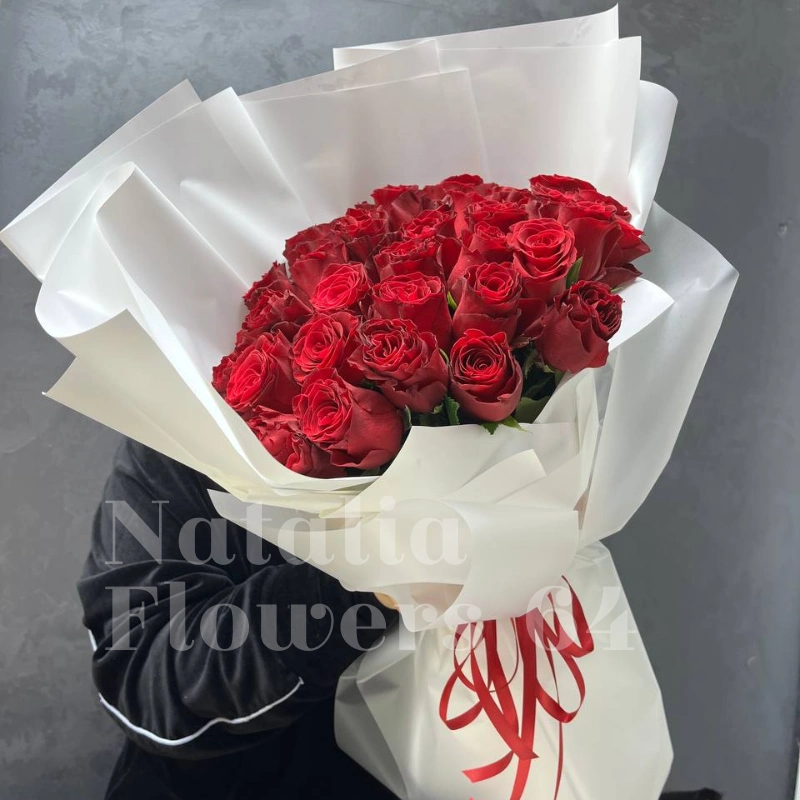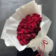 ГлавнаяКаталогРозыБукет из 35-ти красных роз «гостья»