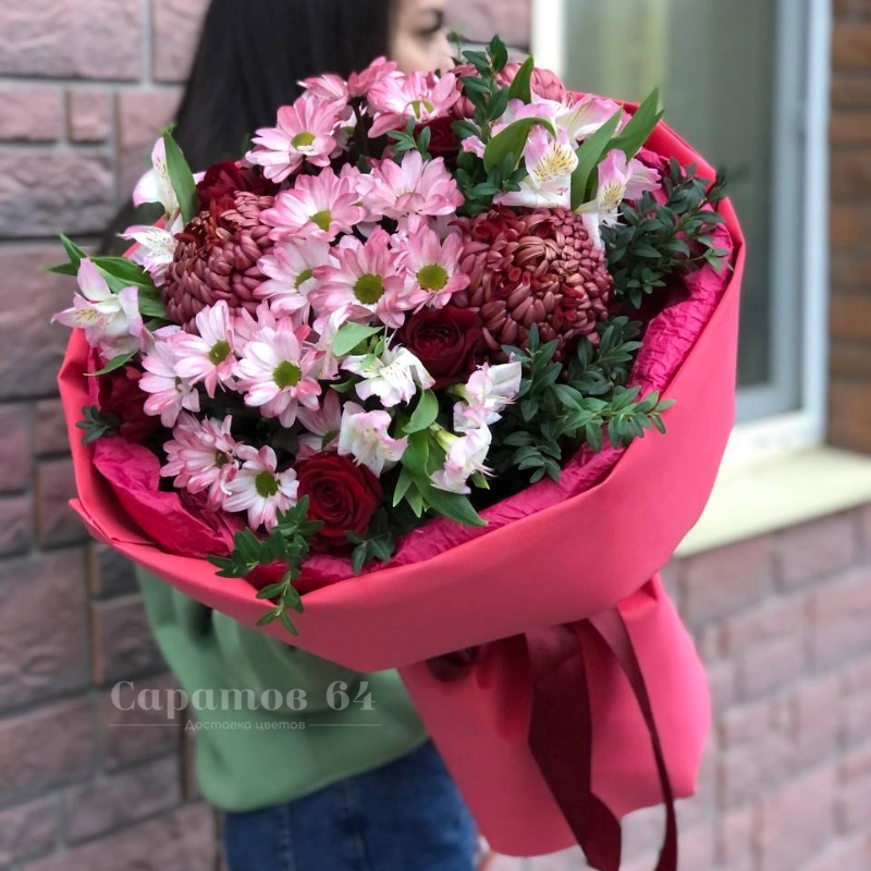 Нежный букет с хризантемами и пионовидной кустовой розой