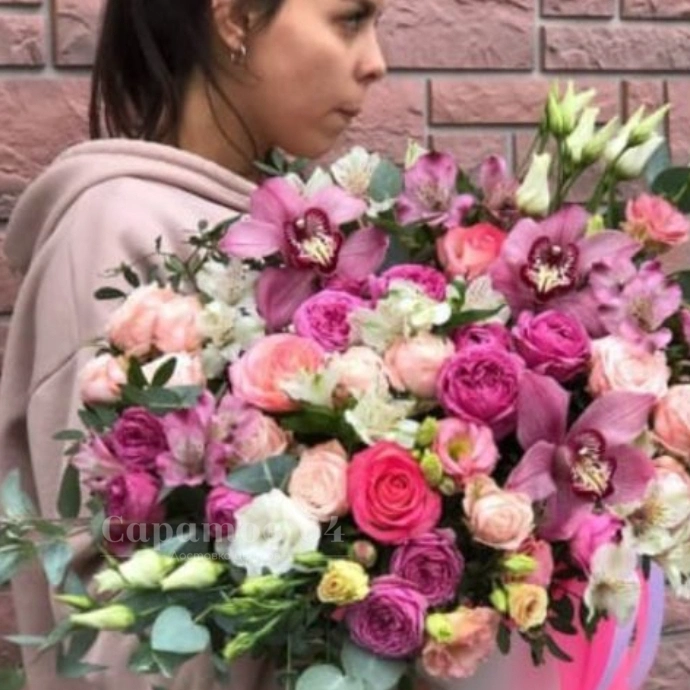 ГлавнаяКаталогКомпозицииКомпозиция в шляпной коробке «орхидея»