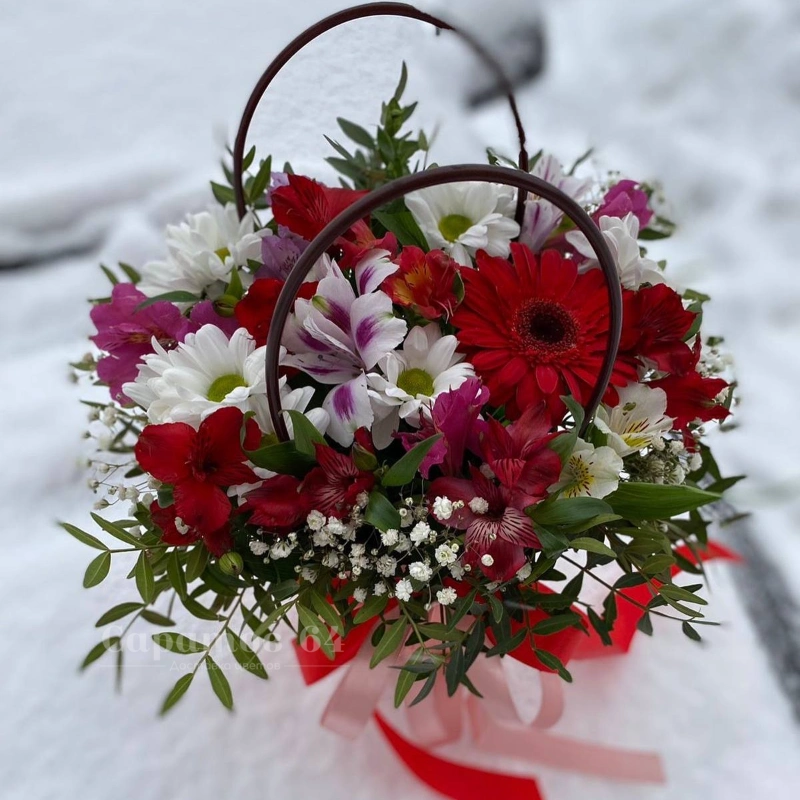 ГлавнаяКаталогКомпозицииЦветы в сумочке «яблочко наливное»