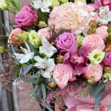 Букет с розами и альстромериями «Весенний вальс»