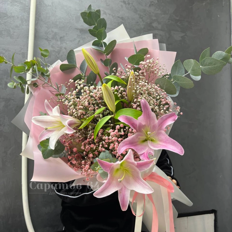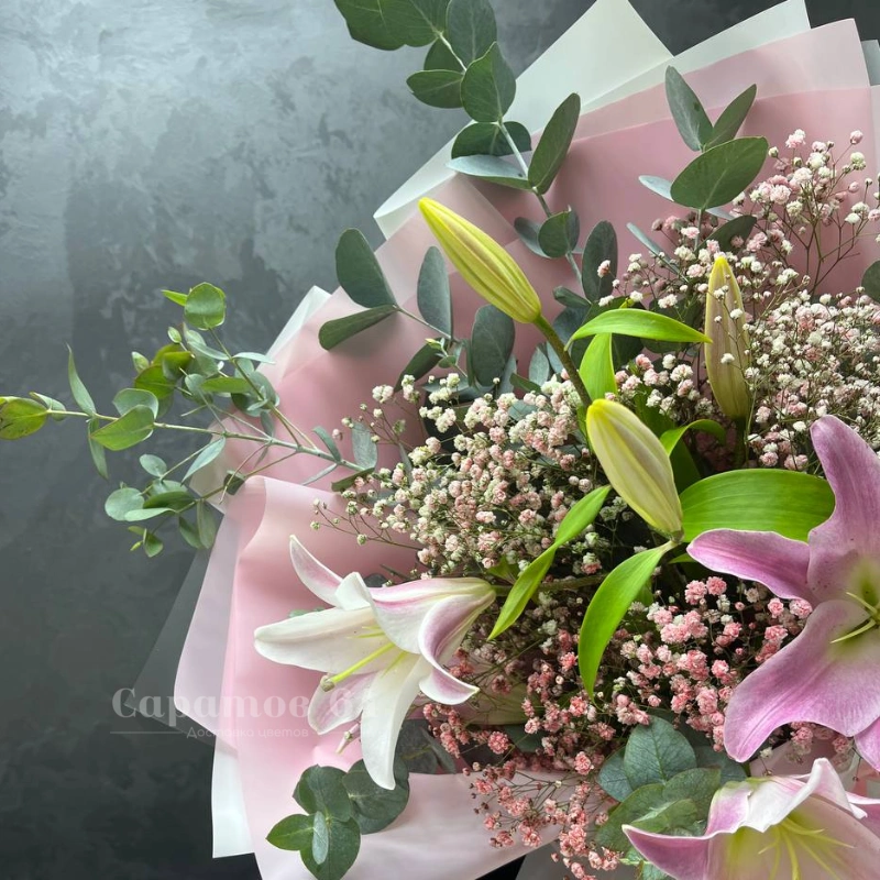 Букет мисти баблс с альстромерией