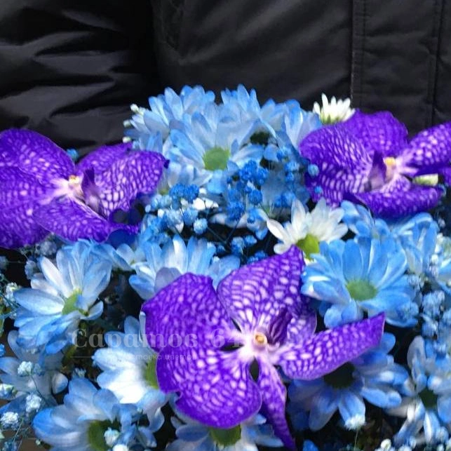 ГлавнаяКаталогКомпозицииКомпозиция в шляпной коробке «синяя орхидея»