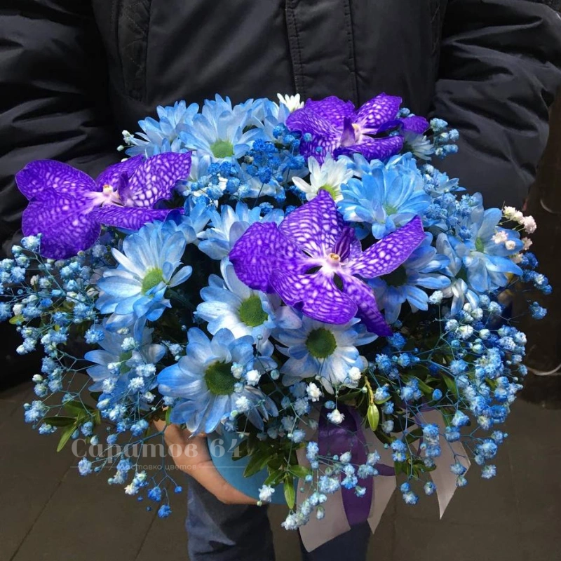 Композиция в шляпной коробке «синяя орхидея»