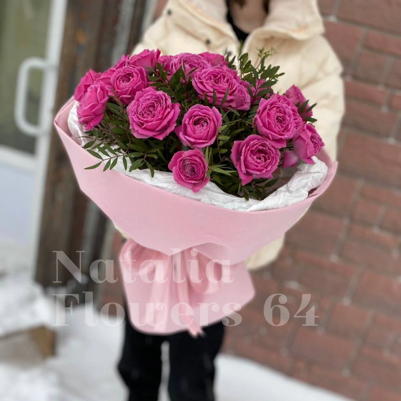 ГлавнаяКаталогРозыБукет из пионовидной кустовой розы «шарики»