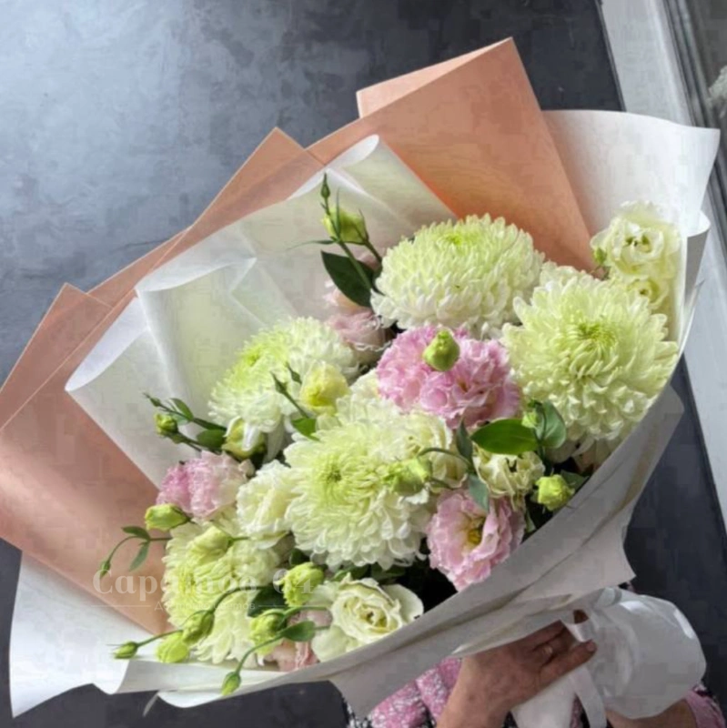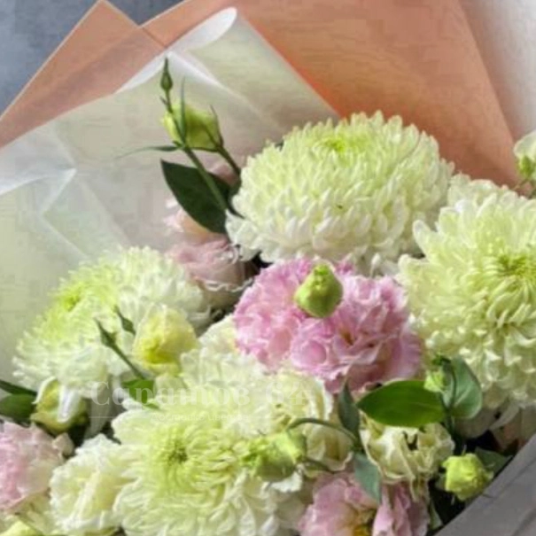 Букет с хризантемами и гипсофилой «Барби»
