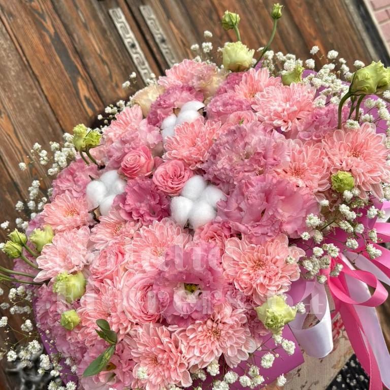 ГлавнаяКаталогКомпозицииКомпозиция в коробке «эустома розовая»