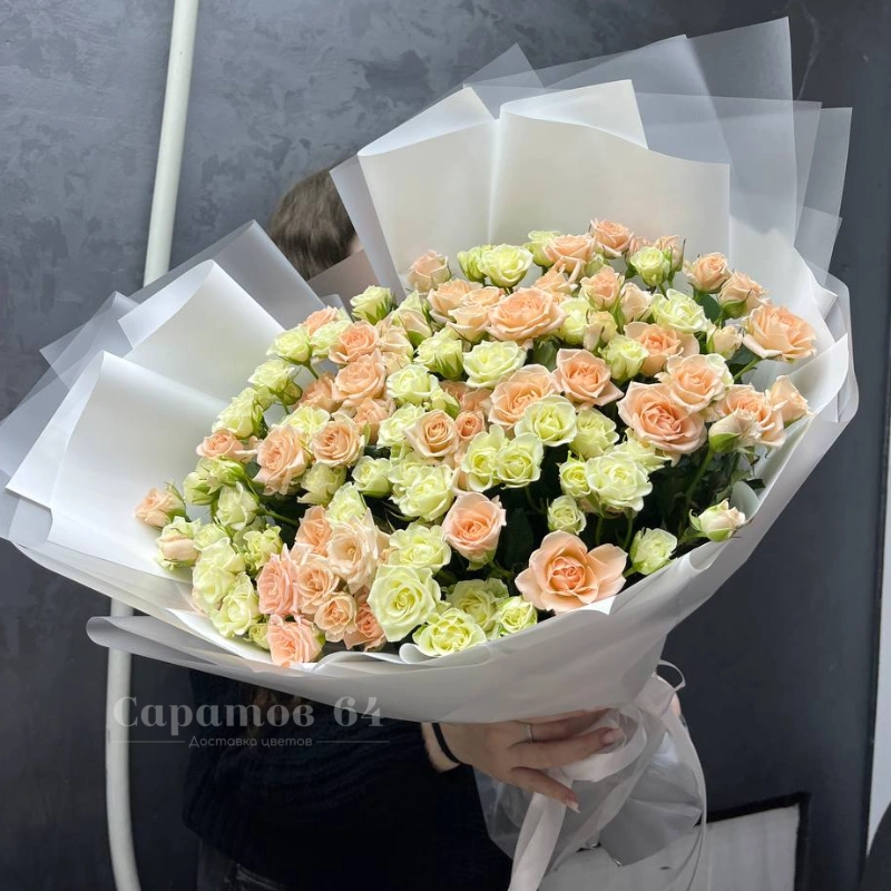 Букет из пионовидных кустовых роз «Мисти баблс»