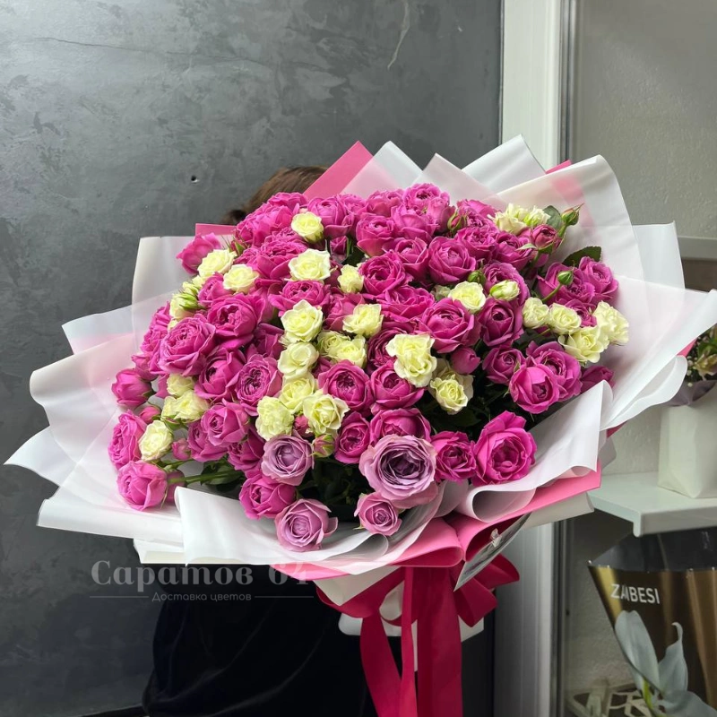 Букет из 101 кустовой розы «Нежный микс»