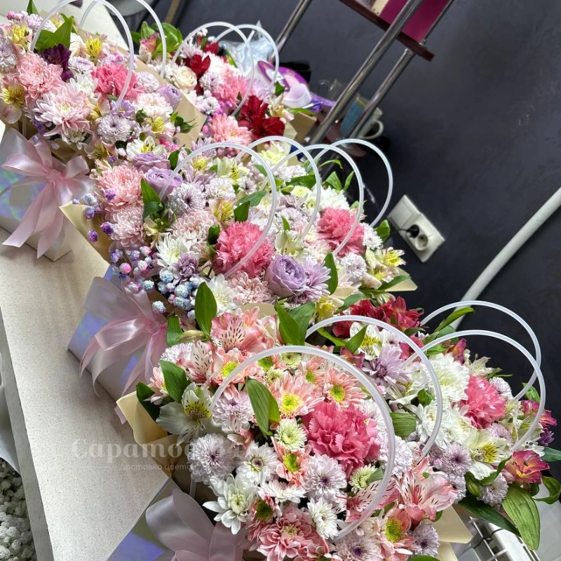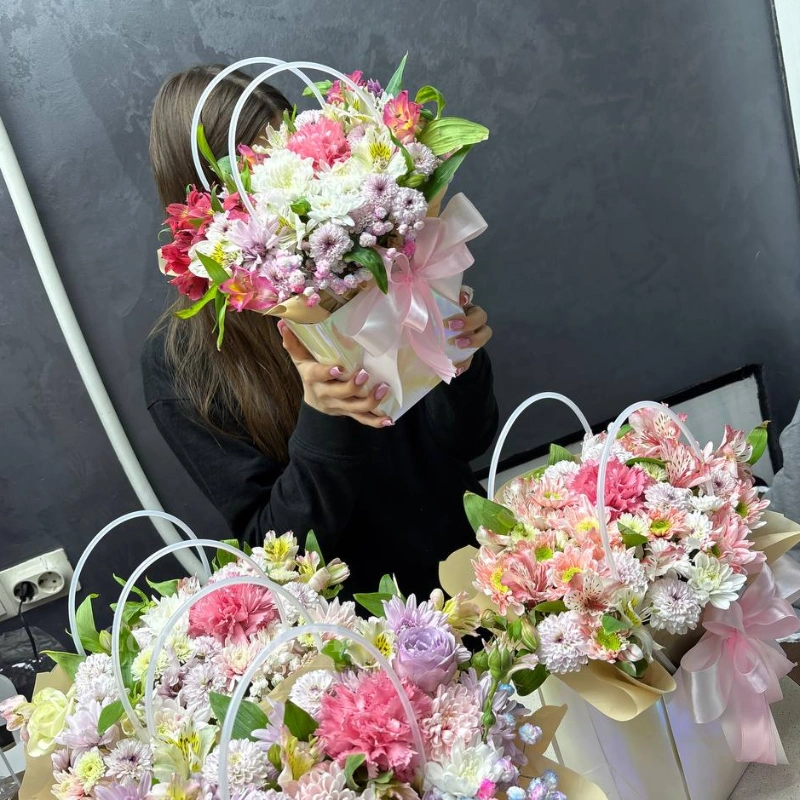 ГлавнаяКаталогКомпозицииСумочка с цветами МИКС