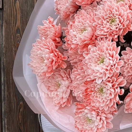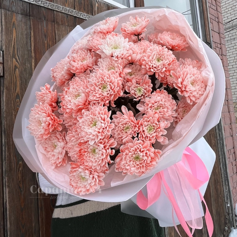 ГлавнаяКаталогБукетыКруглый букет с хризантемами