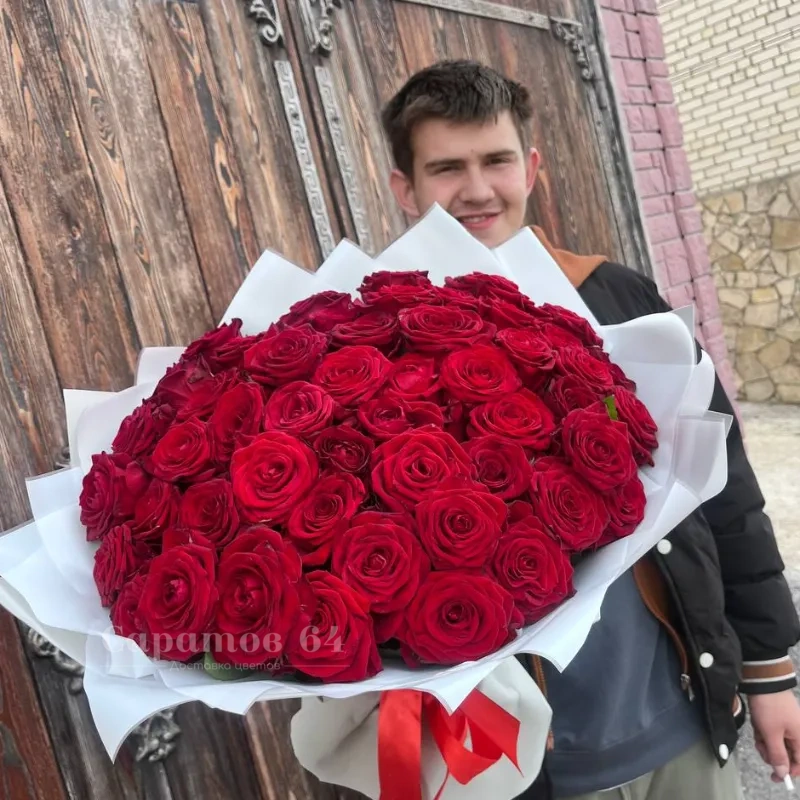 ГлавнаяКаталогРозыБукет 51 красная роза в белом оформлении