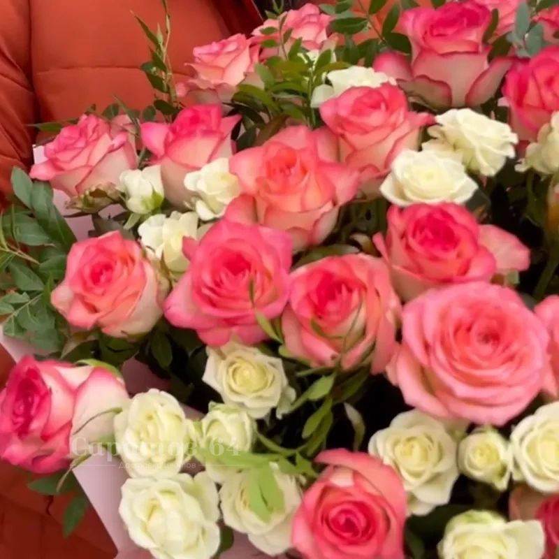 ГлавнаяКаталогКомпозицииКомпозиция из кустовых и одноголовых роз в круглой коробке